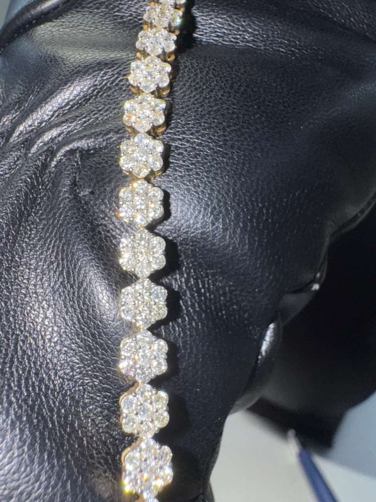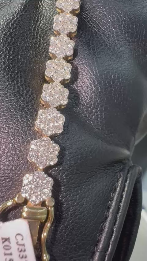 Crafted in luxurious 14k gold, the Radiant Bloom Diamond Tennis Bracelet features an elegant sequence of floral-inspired diamond clusters totaling 5 carats of natural diamonds. Designed to sparkle from every angle, this timeless bracelet blends classic sophistication with eye-catching brilliance, making it perfect for everyday luxury or special occasions.