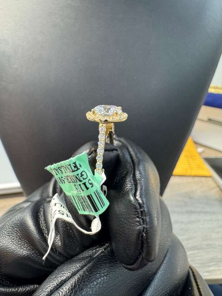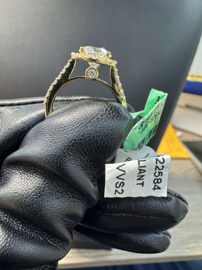Elevate your elegance with this stunning 14K gold halo diamond ring, featuring a dazzling 1.74ct VVS2 lab-grown diamond at its center. Surrounded by a brilliant halo and accented band, the ring reaches a total diamond weight of 2.23ct. IGI certified for exceptional clarity and quality, this piece offers timeless sparkle with modern sustainability—perfect for anyone seeking refined luxury with a radiant presence.