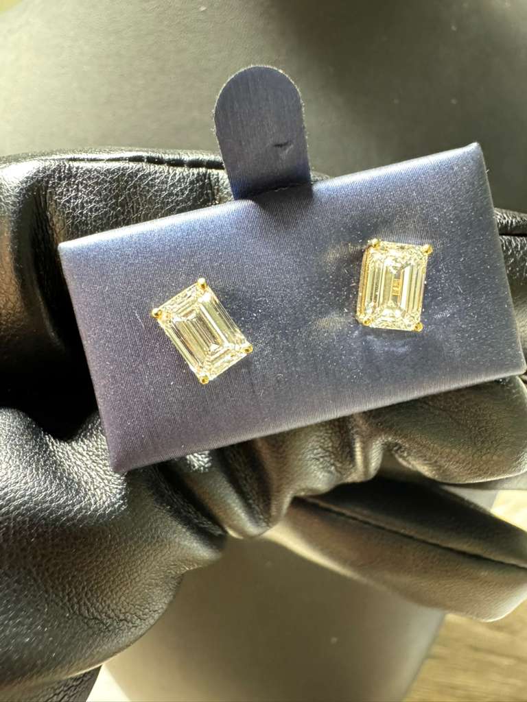 These stunning stud earrings feature 2.5 carats of certified VVS2 lab-grown diamonds, each expertly cut in a radiant emerald shape to maximize brilliance and clarity. Set in luxurious 14k gold, the sleek four-prong design enhances the clean lines of the stones, creating an elegant everyday statement. Perfect for gifting or elevating your own collection, these earrings offer timeless sophistication with exceptional sparkle.