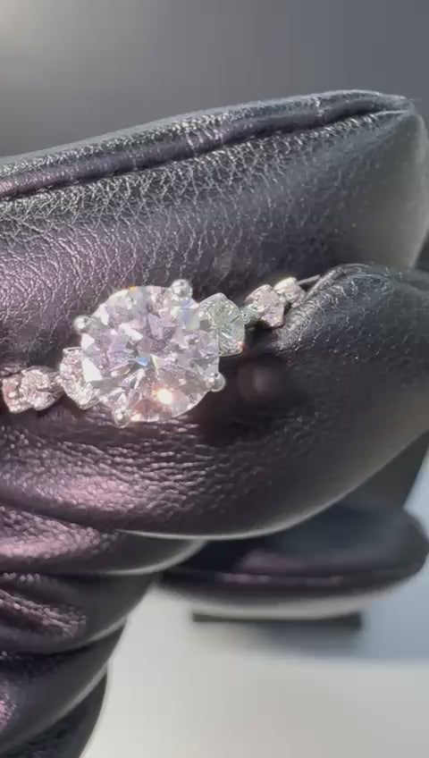 Crafted in luminous 14k white gold, this elegant ring features a brilliant 1ct oval center diamond, beautifully accented by shimmering side stones for a total of 1.25 carats. The refined setting enhances the diamond’s fire and brilliance, creating a timeless piece that’s perfect for engagements, anniversaries, or everyday luxury.
