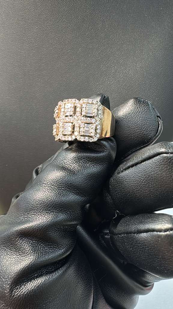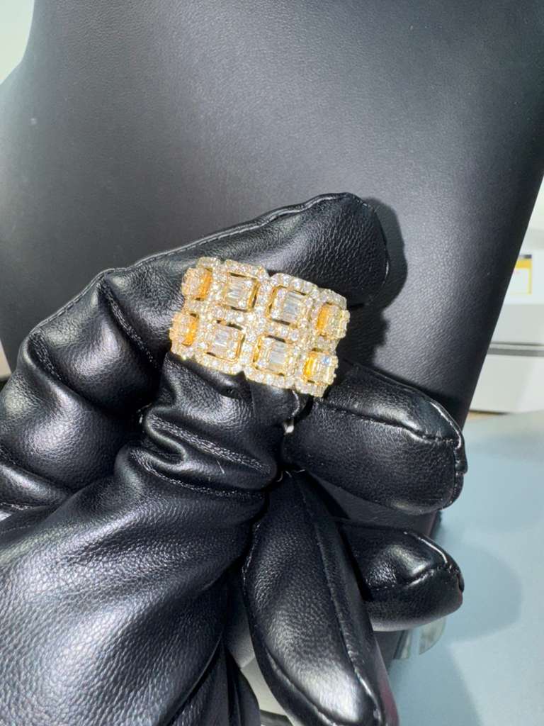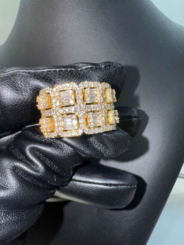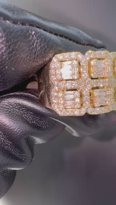 Crafted in rich 14k yellow gold, this exquisite band showcases nearly 3 carats of natural diamonds arranged in a bold emerald-link pattern. Each diamond is meticulously set to create a luxurious, high-shine statement piece that combines timeless elegance with modern edge. Perfect as a standout fashion ring or a special-occasion showstopper.